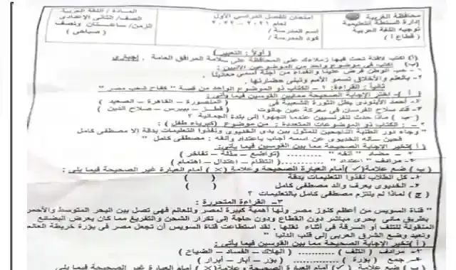 - امتحانات الادارات التعليمية فى اللغة العربية لسنة اولى اعدادي الترم الاول 2022